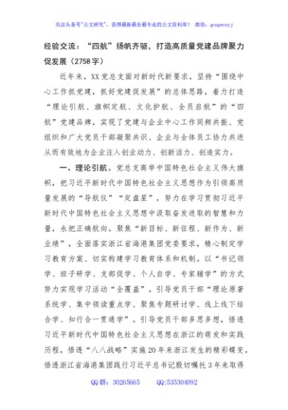 / 经验交流:“四航”扬帆齐驱,打造高质量党建品牌聚力促发展