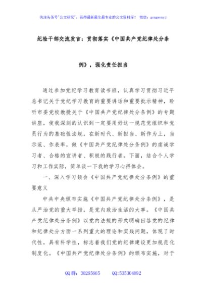 / 纪检干部交流发言:贯彻落实《中国共产党纪律处分条例》,强化责任担当
