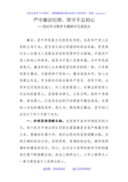 / 严守廉洁纪律,坚守不忘初心,党纪学习教育专题研讨交流发言