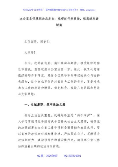 / 办公室主任就职表态发言:砥砺前行担重任,锐意进取谱新篇