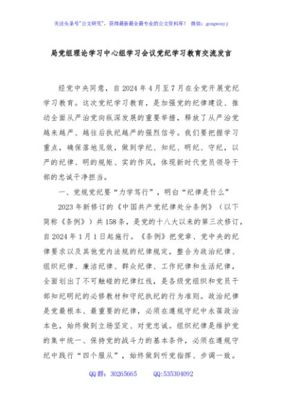 / 局党组理论学习中心组学习会议党纪学习教育交流发言