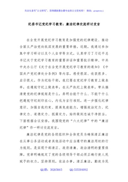 / 纪委书记党纪学习教育:廉洁纪律交流研讨发言