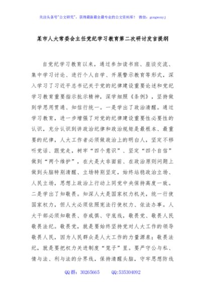 / 某市人大常委会主任党纪学习教育第二次研讨发言提纲
