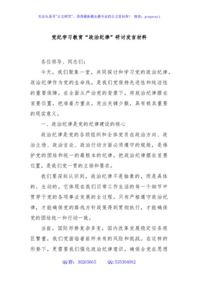 / 党纪学习教育“政治纪律”研讨发言材料