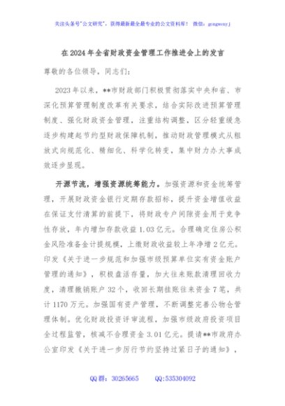 / 在2024年全省财政资金管理工作推进会上的发言
