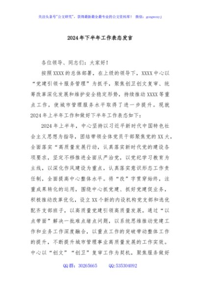 / 2024年下半年工作表态发言