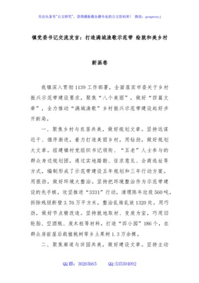 镇党委书记交流发言:打造满城渔歌示范带 绘就和美乡村新画卷