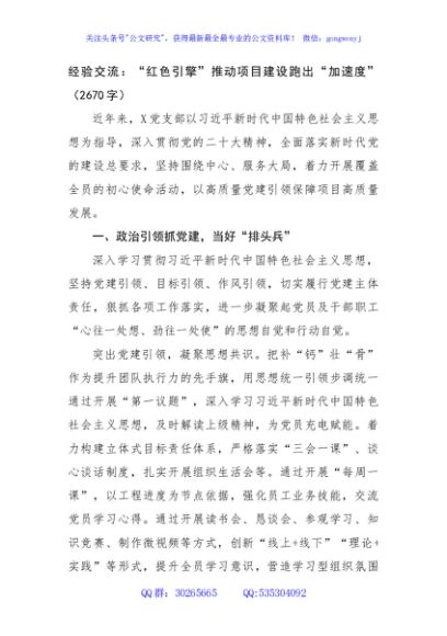 / 经验交流:“红色引擎”推动项目建设跑出“加速度”(2670字)
