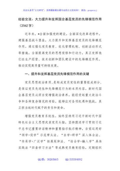 / 经验交流:大力提升和发挥国企基层党员的先锋模范作用(2562字)