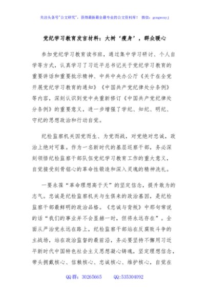 / 党纪学习教育发言材料:大树‘瘦身’,群众暖心