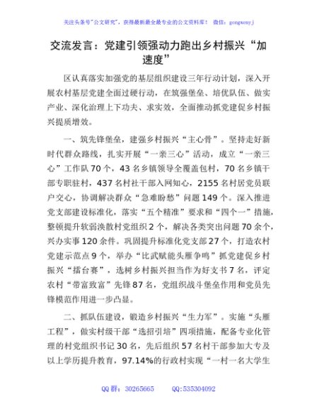 / 交流发言:党建引领强动力 跑出乡村振兴“加速度”