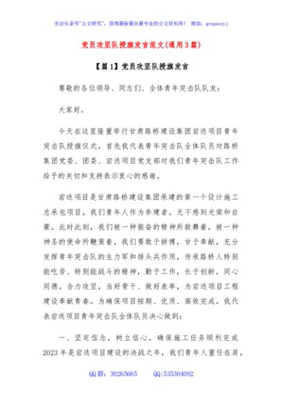 / (3篇)党员攻坚队授旗发言范文