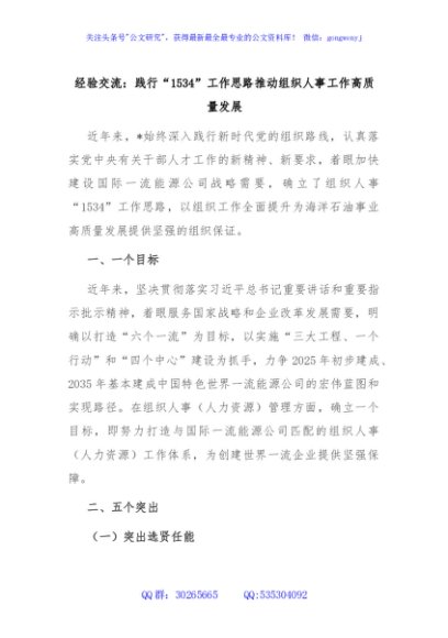 / 经验交流:践行“1534”工作思路推动组织人事工作高质量发展