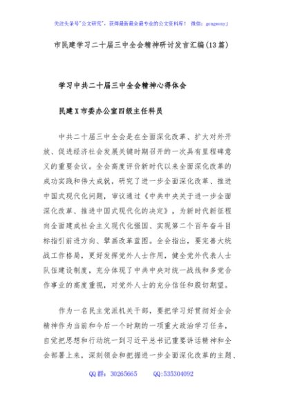 / (13篇)市民建学习二十届三中全会精神研讨发言汇编