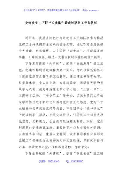 / 交流发言:下好“四步棋”锻造过硬组工干部队伍