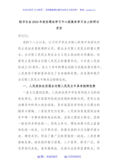 / 秘书长在2024年政协理论学习中心组集体学习会上的研讨发言