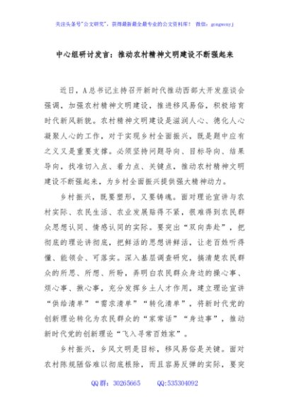 / 中心组研讨发言:推动农村精神文明建设不断强起来