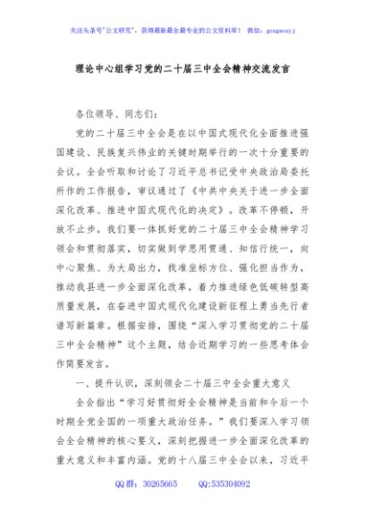 / 理论中心组学习党的二十届三中全会精神交流发言
