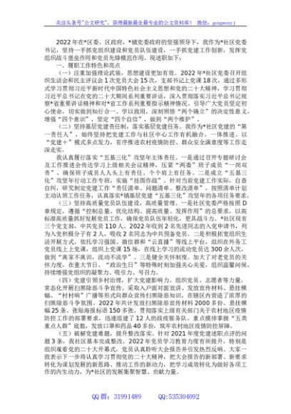 / 社区党支部书记2022年度抓基层党建工作述职报告