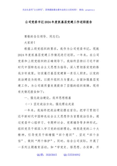 / 公司党委书记2024年度抓基层党建工作述职报告