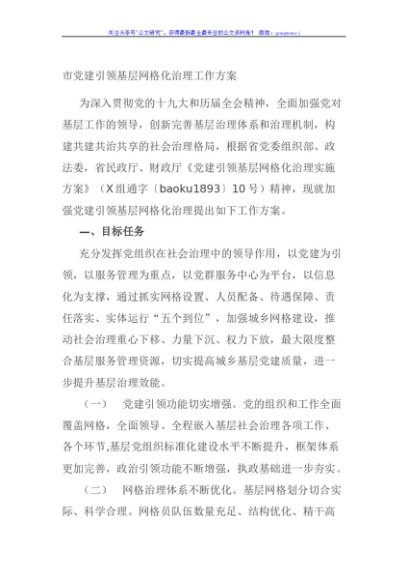 / 市党建引领基层网格化治理工作方案