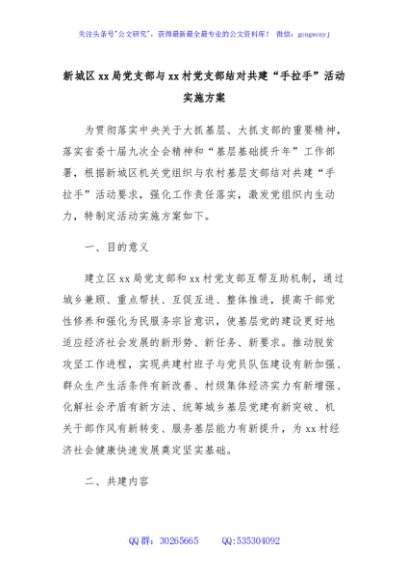 / 新城区xx局党支部与xx村党支部结对共建“手拉手”活动实施方案