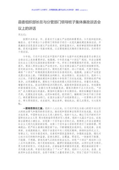 县委组织部长在与分管部门领导班子集体廉政谈话会议上的讲话