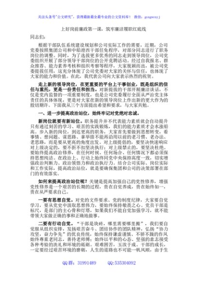 / 国企纪委书记在新提拔中层助理以上干部集体廉洁谈话的讲话