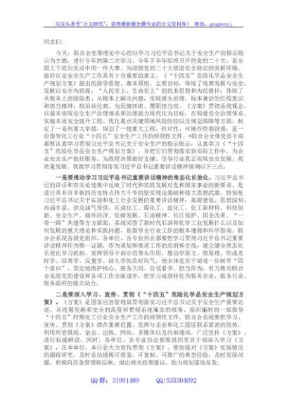 / 在党委理论中心组学习会议上的讲话(安全生产的指示批示)