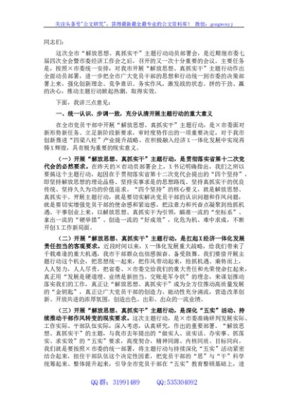 / 市委书记在全市“解放思想、真抓实干”主题行动动员部署会上的讲话
