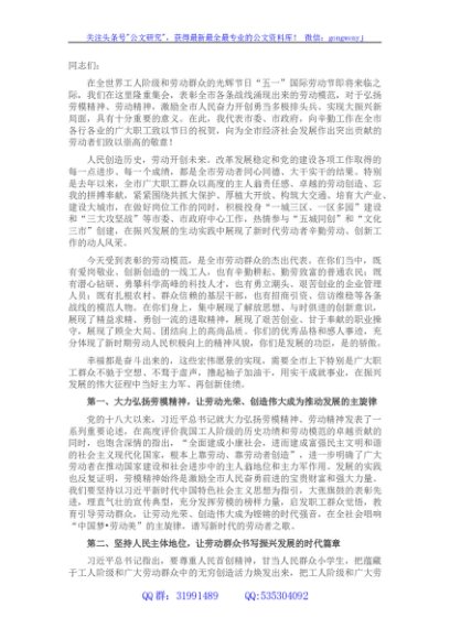 / 在市庆祝“五一”国际劳动节暨劳模表彰大会上的讲话