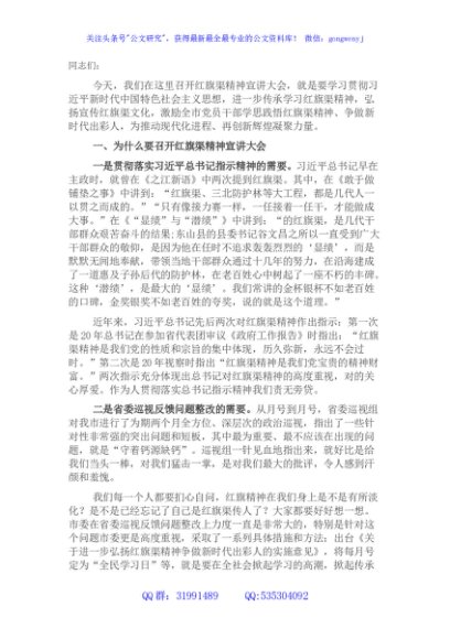 / 在全市红旗渠精神宣讲大会上的讲话
