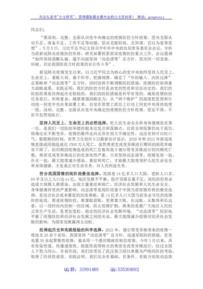 / 在党组中心组学习5月5日讲话精神时的发言