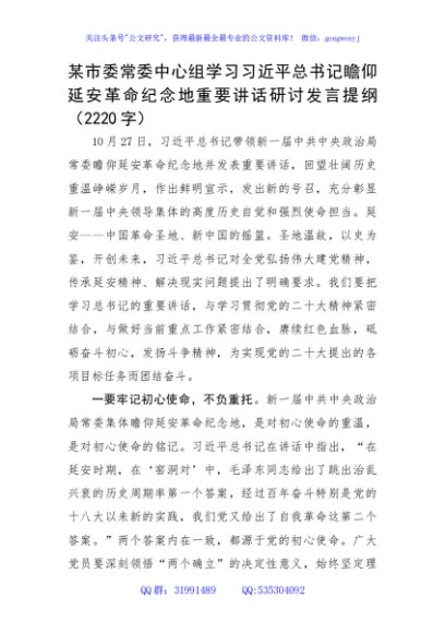 / 中心组学习瞻仰延安革命纪念地重要讲话研讨发言提纲