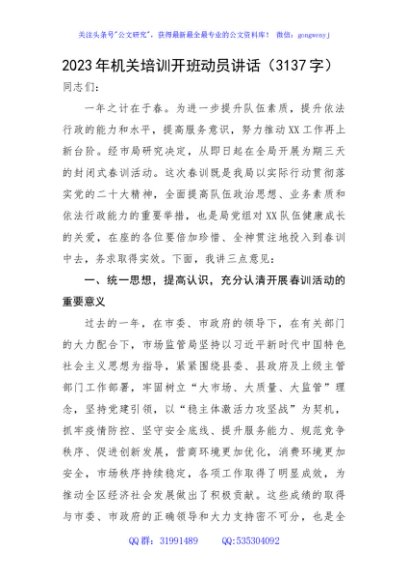 / 2023年机关培训开班动员讲话