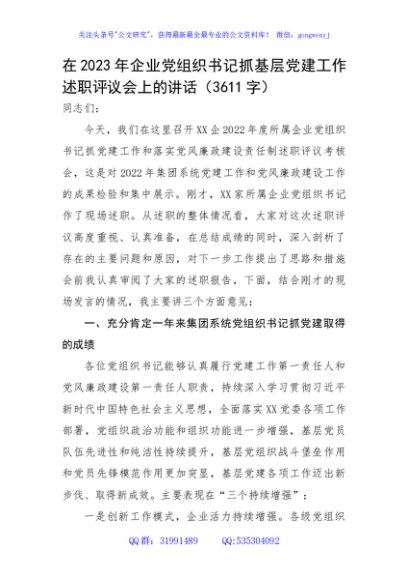 / 在2023年国企党组织书记抓基层党建工作述职评议会上的讲话