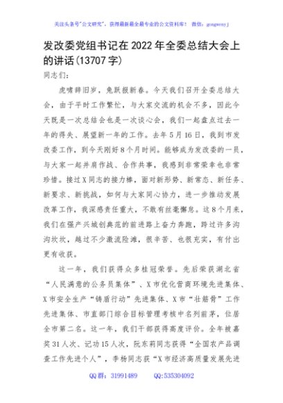 / 发改委党组书记在2022年全委总结大会上的讲话