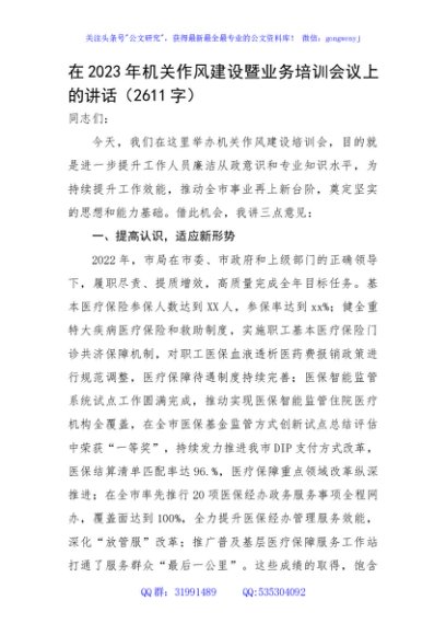 / 在2023年机关作风建设暨业务培训会议上的讲话