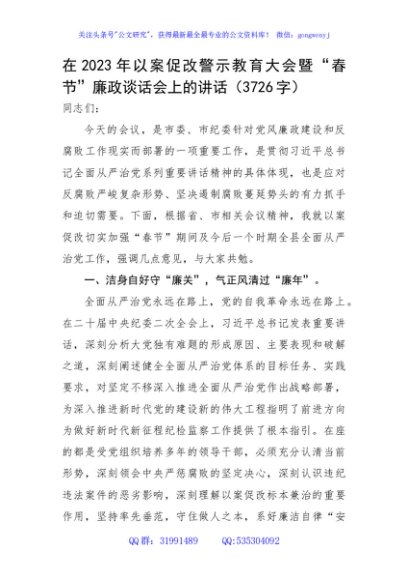 / 在2023年以案促改警示教育大会暨“春节”廉政谈话会上的讲话