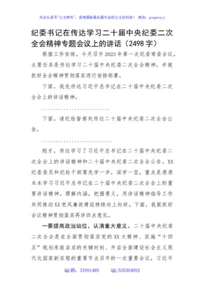 / 纪委书记在传达学习二十届中央纪委二次全会精神专题会议上的讲话