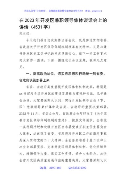 / 在2023年开发区兼职领导集体谈话会上的讲话