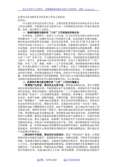 / 区委书记在2023年全区农村工作会上的讲话