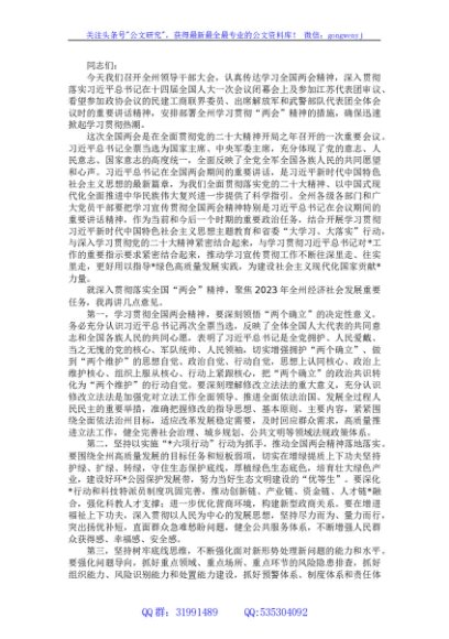/ 在全州领导干大会传达学习“两会”精神时的讲话提纲