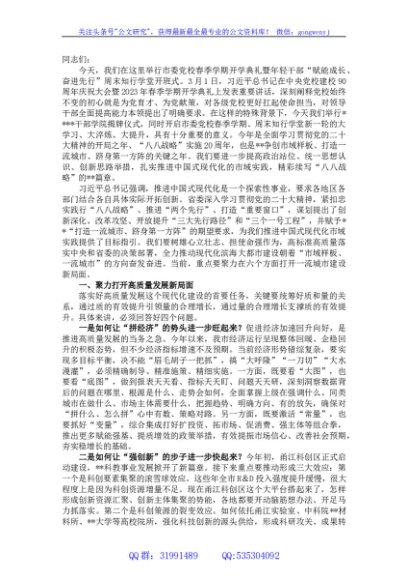 / 在2023年市委党校春季学期开学典礼暨年轻干部“赋能成长、奋进先行”周末知行学堂开班式上的讲话