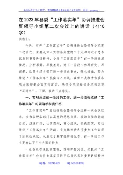 / 在2023年县委“工作落实年”协调推进会暨领导小组第二次会议上的讲话