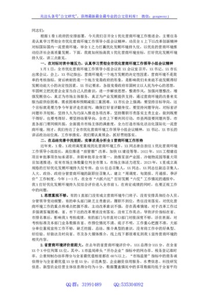 / 县区党委书记在优化营商环境会议上的讲话