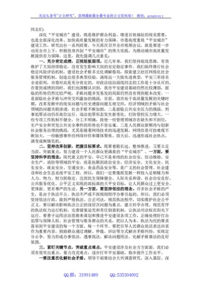 / 市委书记在全市平安城市建设推进会上的讲话