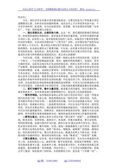 / 市委书记在全市重点项目建设推进会上的讲话