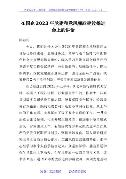 / 在国企2023年党建和党风廉政建设推进会上的讲话