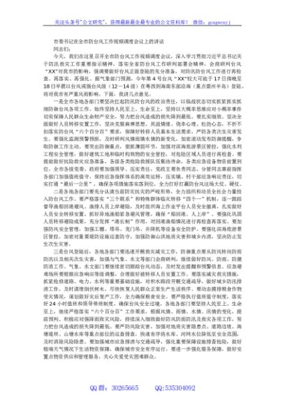 / 市委书记在全市防台风工作视频调度会议上的讲话